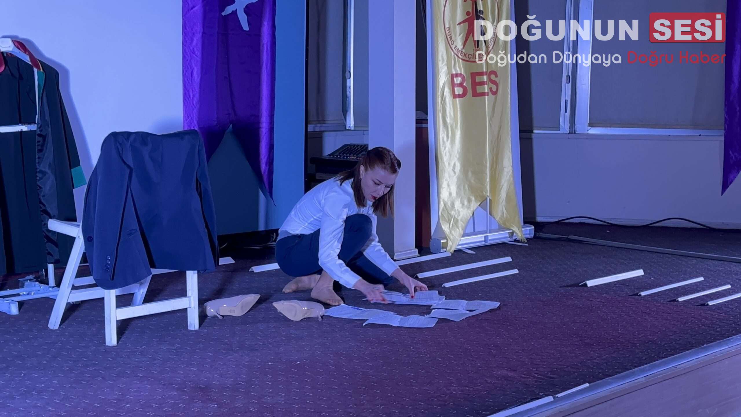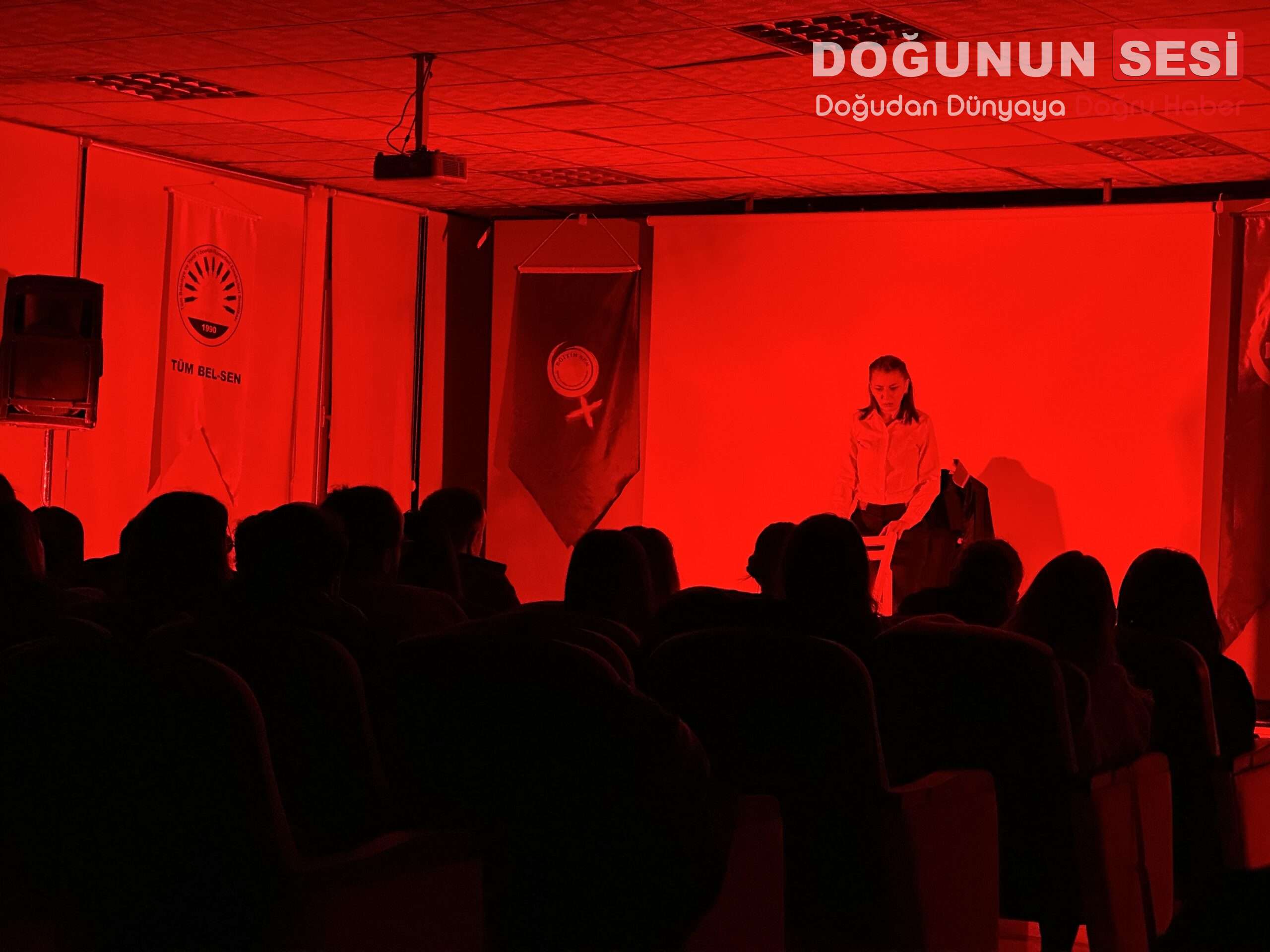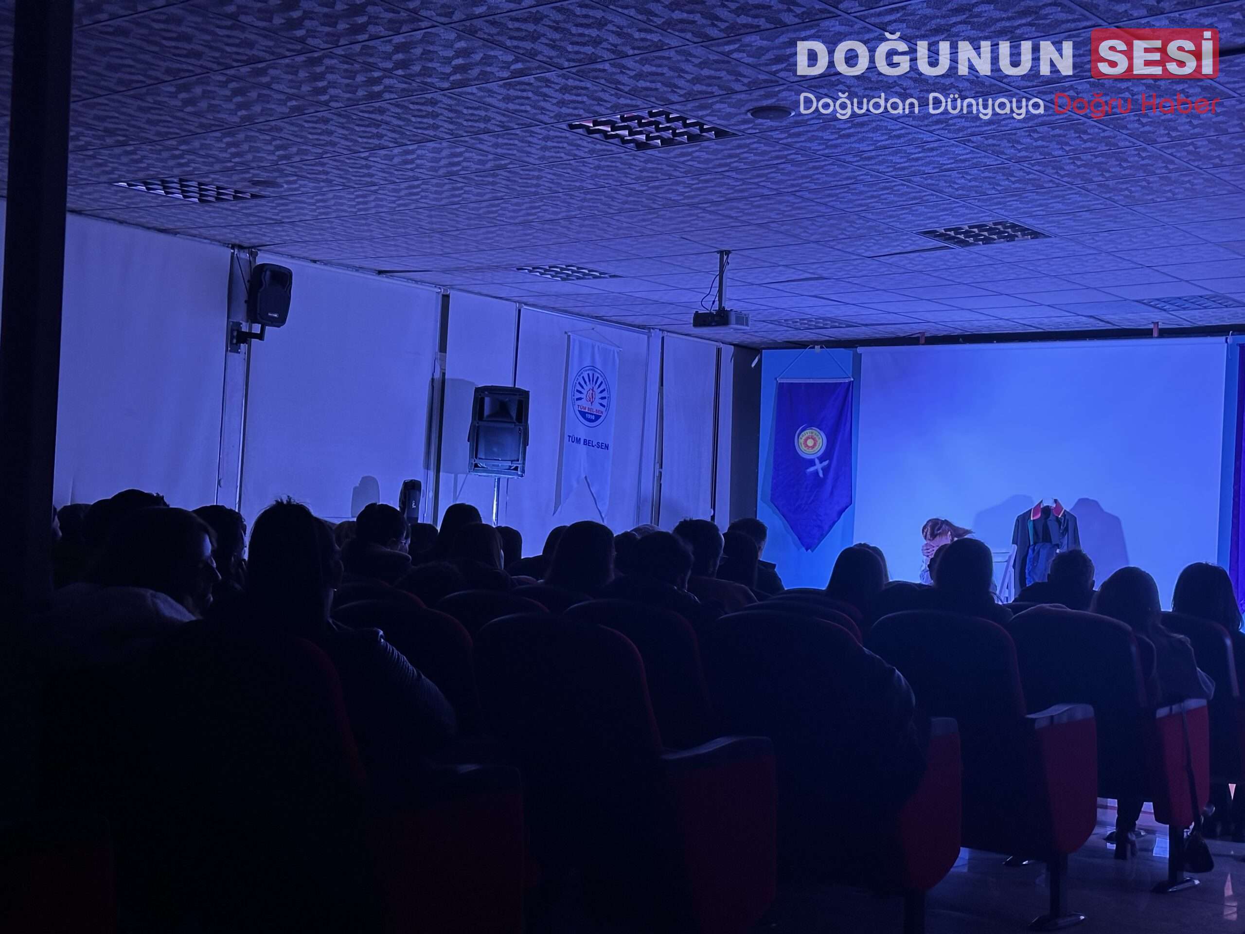 Etkinlikte sanatın toplumsal konulara dikkat çekmedeki rolüne vurgu yapılırken, tiyatro gösterimi katılımcılar tarafından ilgiyle takip edildi.