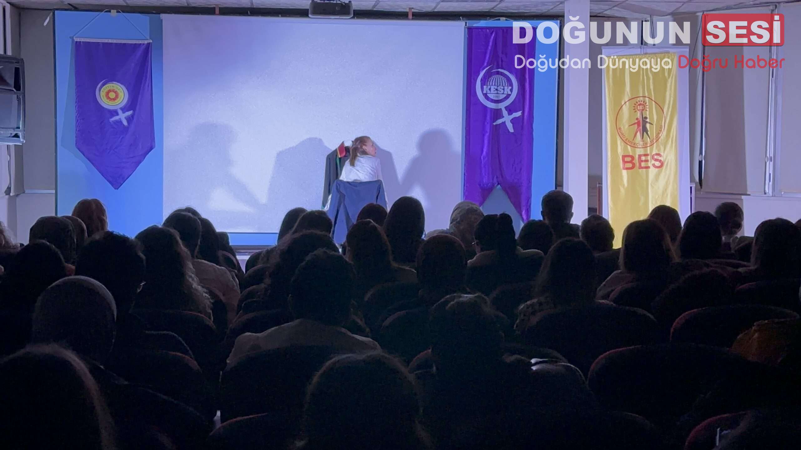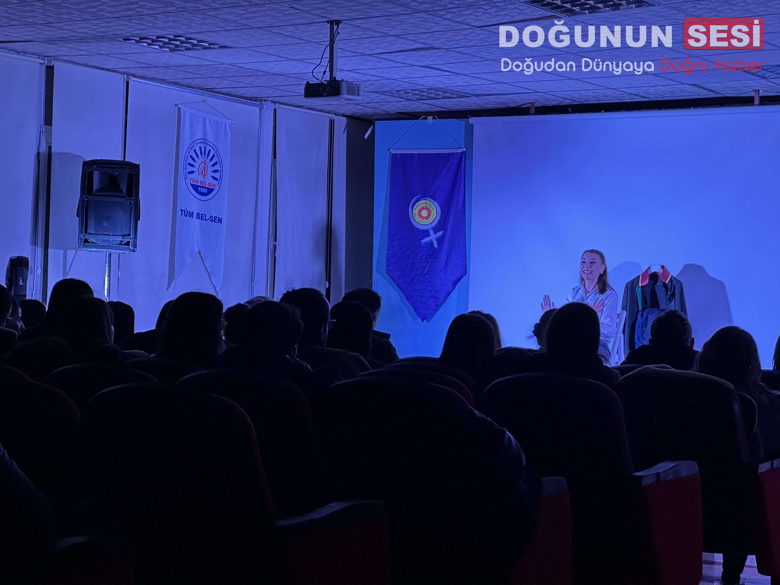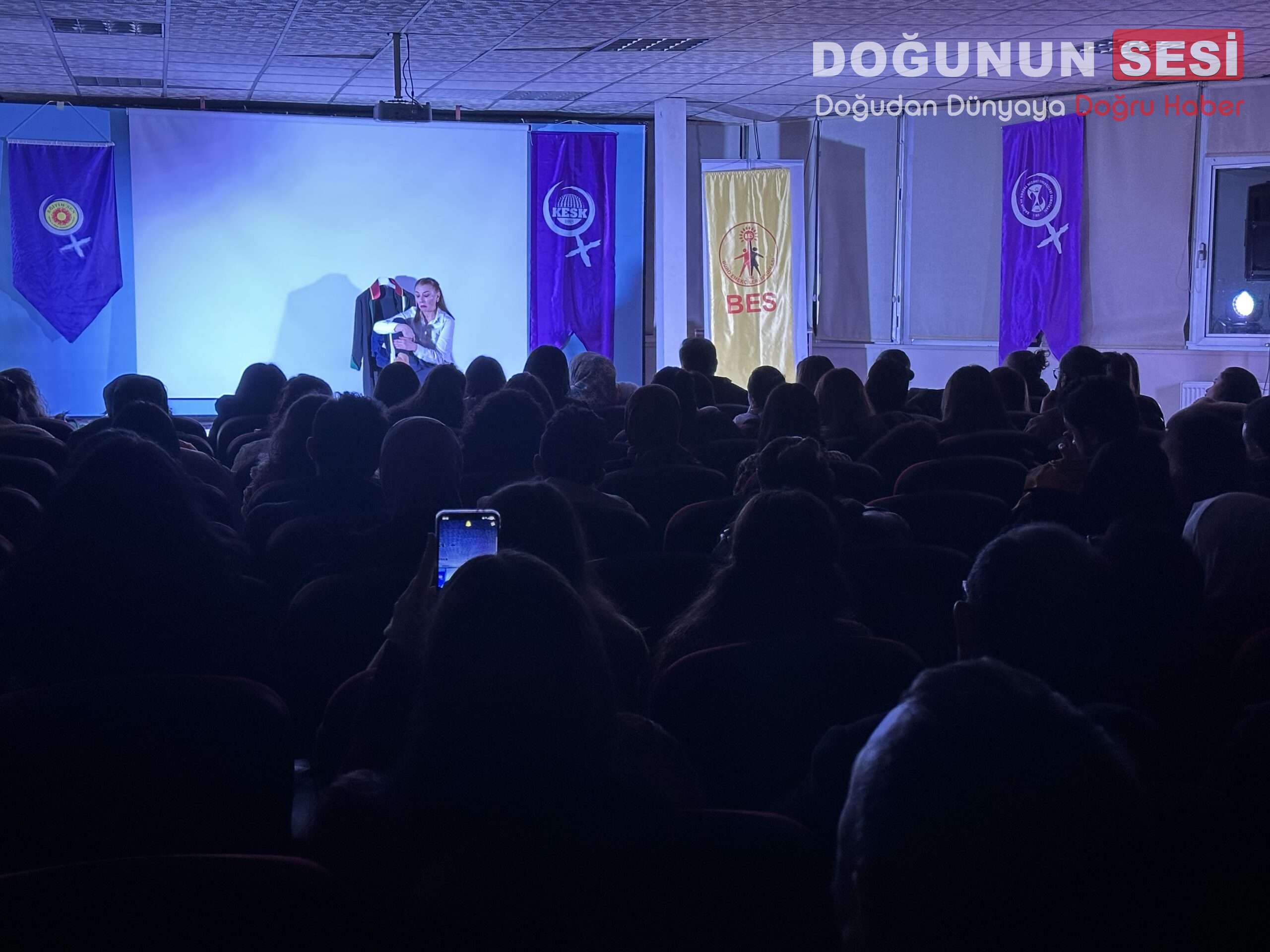 Etkinlikte sanatın toplumsal konulara dikkat çekmedeki rolüne vurgu yapılırken, tiyatro gösterimi katılımcılar tarafından ilgiyle takip edildi.